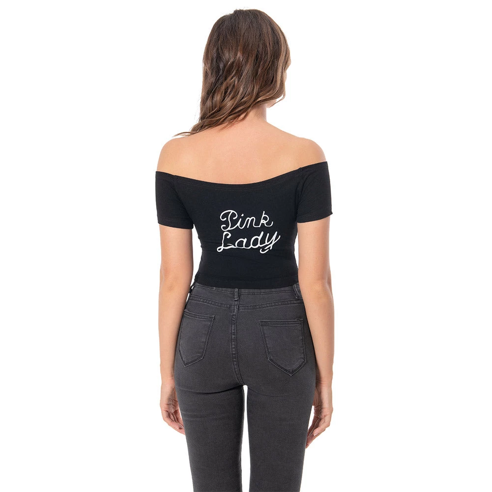 1970S Pink Lady Cosplay Costume Letther Print T-shirt Off-shoulder Short Sleeve Shirt Top